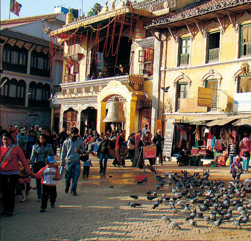 尼泊尔和我国西藏相邻,边界线长达1400 公里,历史上和西藏交往甚密。在喜马拉雅山区,尼泊尔的一些少数民族如夏尔巴族、达芒族等,他们使用藏语,信仰藏传佛教,和我国的藏族有着很深的渊源。过去,尼泊尔在和中国历代中央王朝的往来中,西藏也是必经之地。在西藏吉隆县境内,曾发现记载唐代官员出使尼泊尔的石刻记事。正因历史和地理的缘故,近几十年,尽管尼泊尔国内政局动荡不宁,但政府和民间一直和我国保持着良好的关系。尤其是中国改革开放后,中尼边贸、旅游、文化交流异常活跃,中国人在走向世界的同时,也把目光投向了近邻尼泊尔。在加德满都、兰毗尼、博卡拉等尼泊尔的几个重要城市,到处可以看到从中国内地