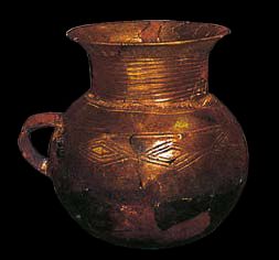 ◎ 西藏东部石棺葬出土的双耳陶罐,分布在四川西部、云南西北部石棺葬中,和我国西北同类陶器极为相似。